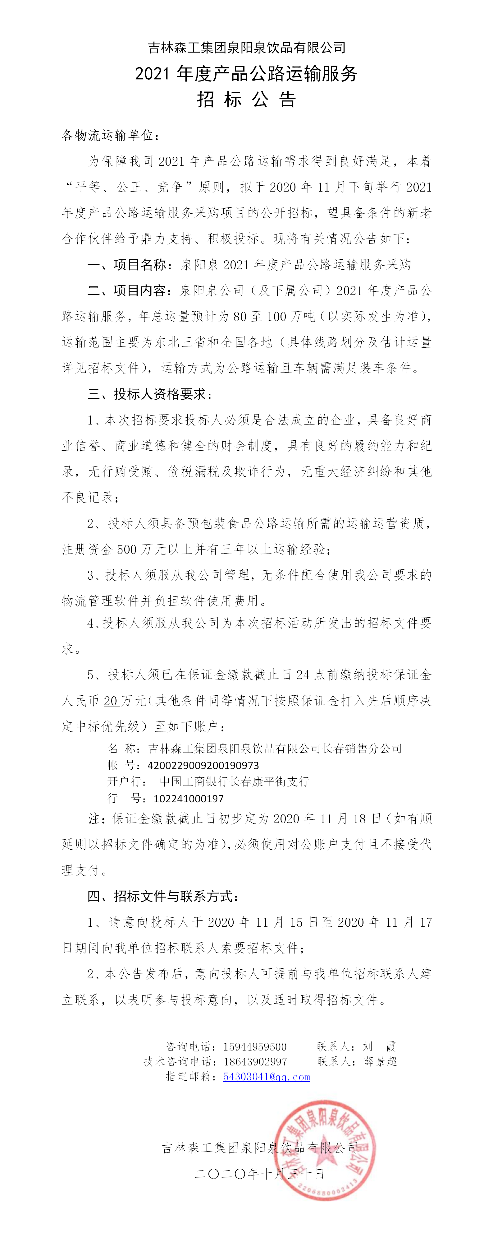2021年度產(chǎn)品公路運輸服務(wù)招標(biāo)公告