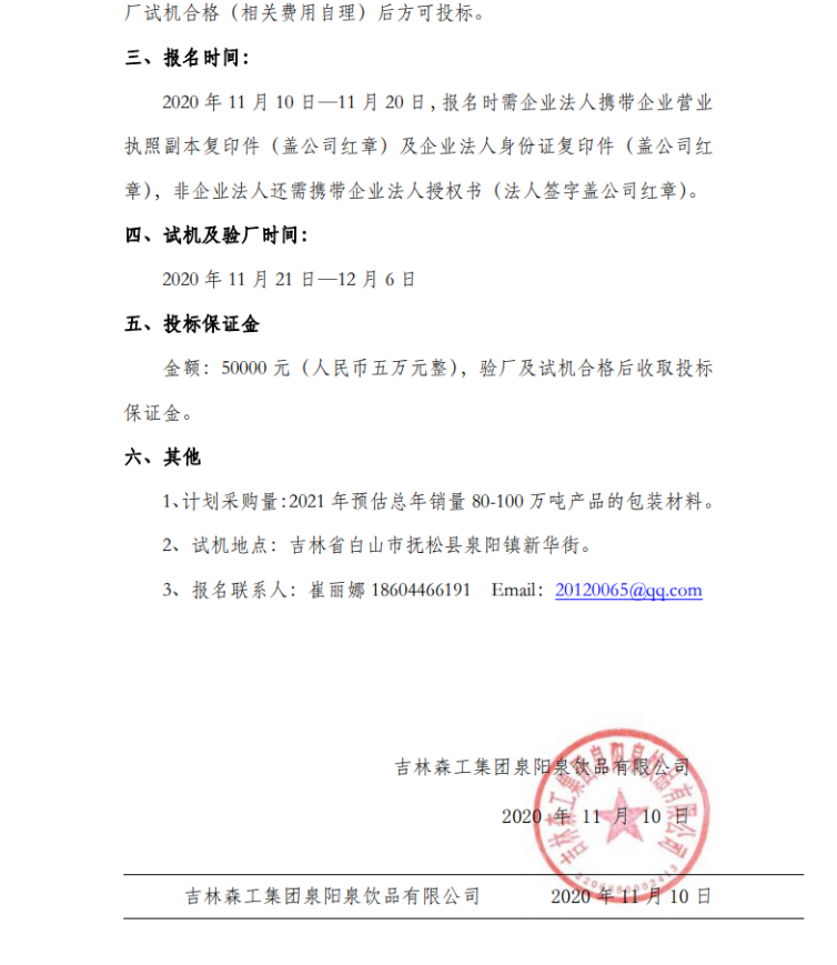 吉林森工集團(tuán)泉陽泉飲品有限公司